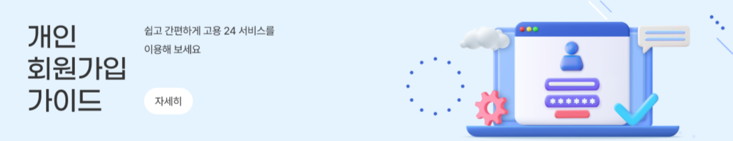 회원정보가전환되지 않아 기존에 워크넷 등 서비스를 이용하였으나 갑자기 로그인이 안되고, 다시 고용24 회원가입을 해야하는 경우가 발생할 수 있습니다. 아래 링크를 통해 고용24 실명인증(회원가입)방법에 대해 확인하시기 바랍니다.