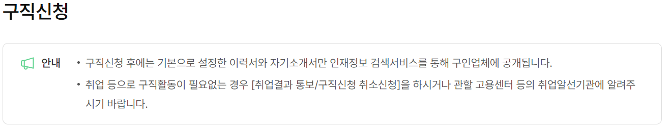 ▣ 고용24 구직신청 공지내용