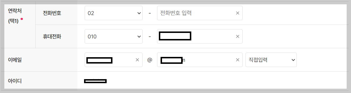 2.성명, 주소, 연락처, 이메일 정보를 확인하고 수정하는 영역입니다.