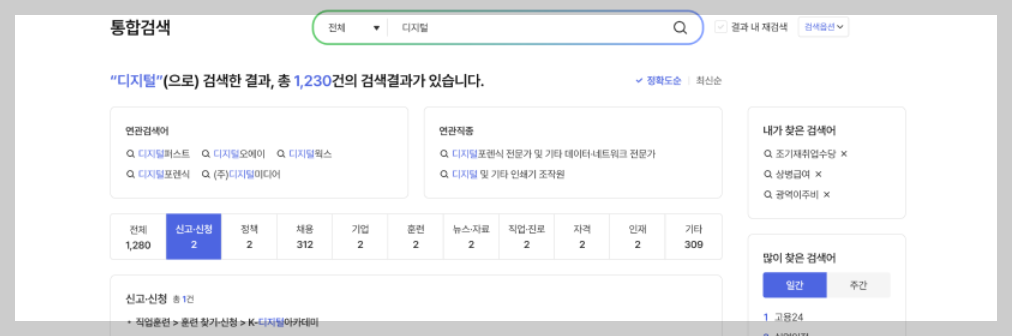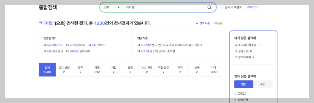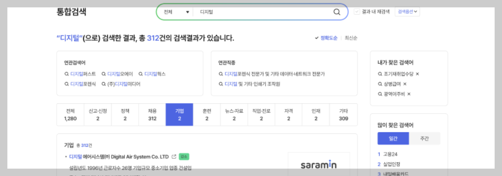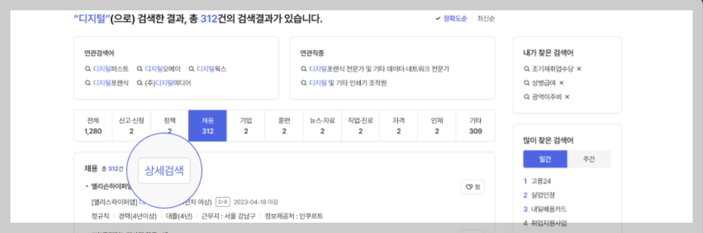 3. 추천 검색어 : 사용자가 많이 찾는 추천검색어를 제공해드려요. 개인회원과 기업회원이 각각 관심있는 검색어를 클릭하여 상세 내용을 확인해보세요.
